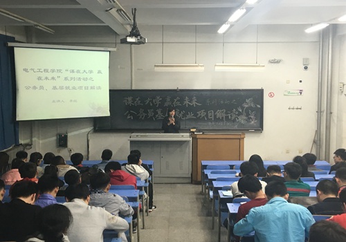 为提升就业指导成效,扩宽学生就业视野,电气工程学院于第八教学楼面向全体14级学生推出公务员和基层就业项目指导精品课。